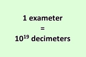 Exameter (Em): Decimeter (dm): The exameter is a metric unit of length, which is equal to 1019 decimeters. Formula: 1 exameter = 1019 decimeters Symbols: Exameter: Em Decimeter: dm …