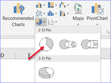 Step 3: Click the "Pie" icon in the "Charts" section;