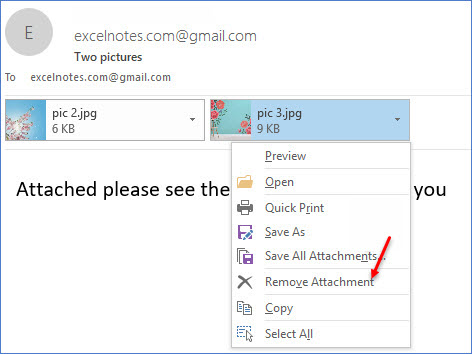 Step 3: From the drop-down list, click "Remove Attachment";